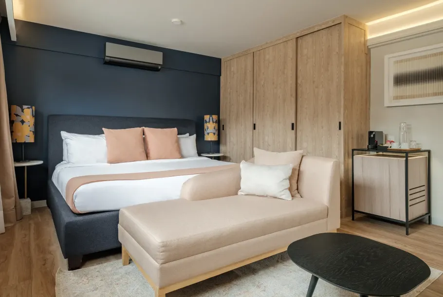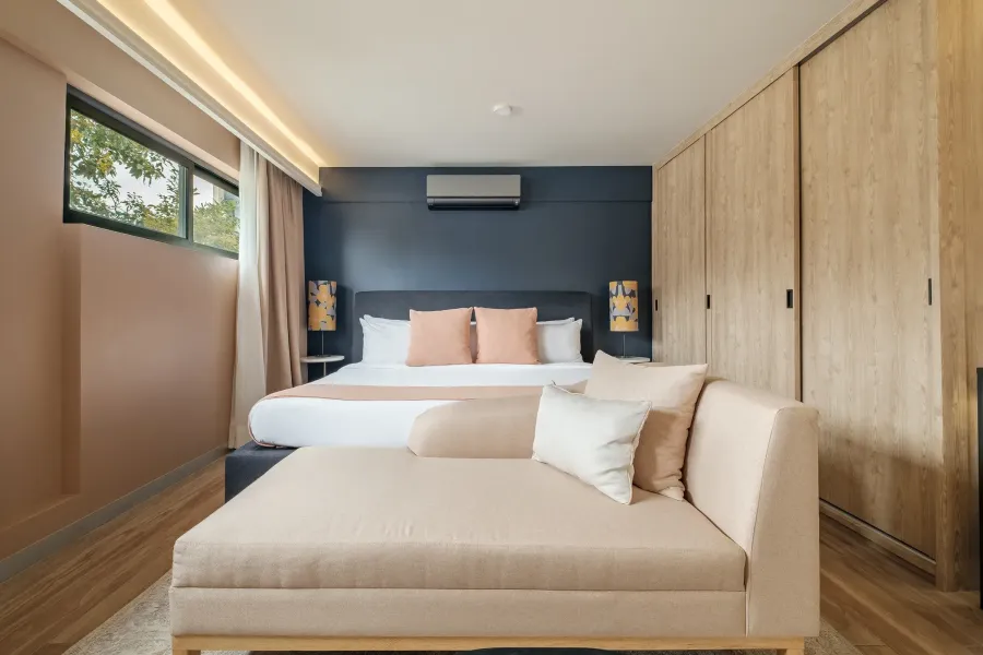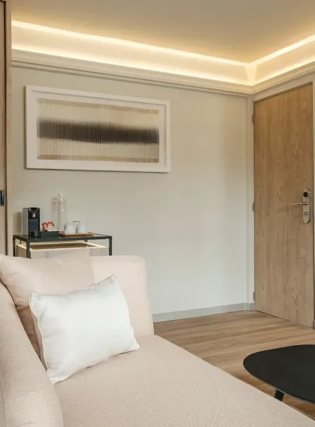 Designed for maximum comfort, featuring a cozy sofa, a fully stocked minibar, and a desk for remote work, this suite welcomes you with open arms.